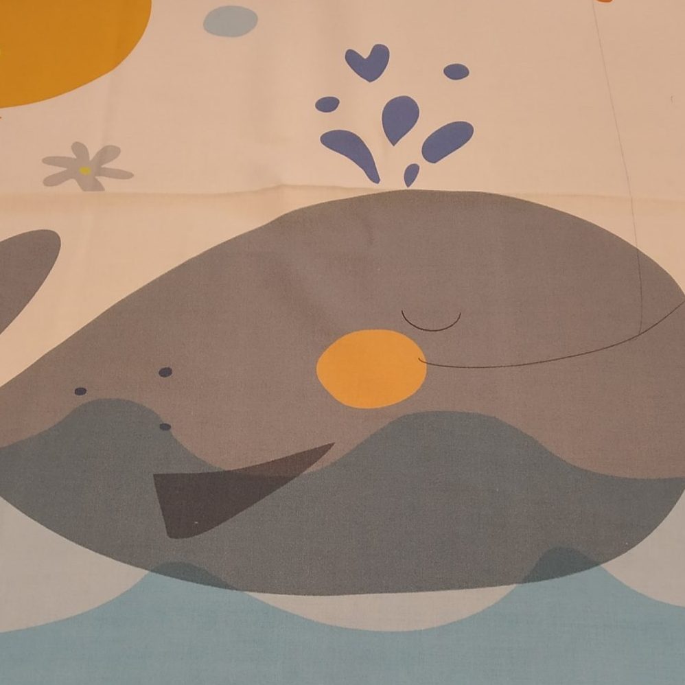 Panel de tela con motivo de ballena con unas medidas de 0,93 cm x 1.10 mt