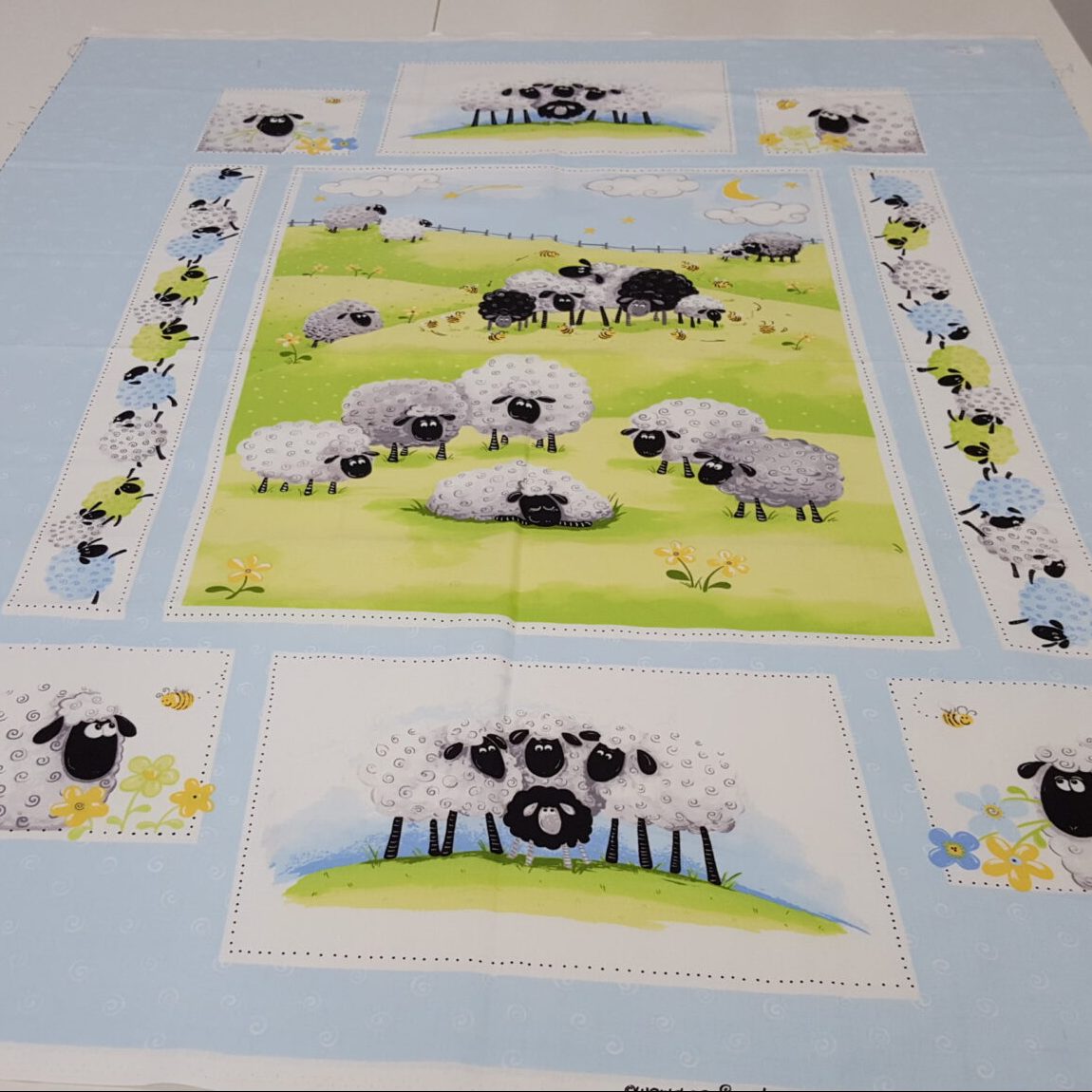 Anímate a hacer una pequeña colcha con este panel de ovejas en color azul