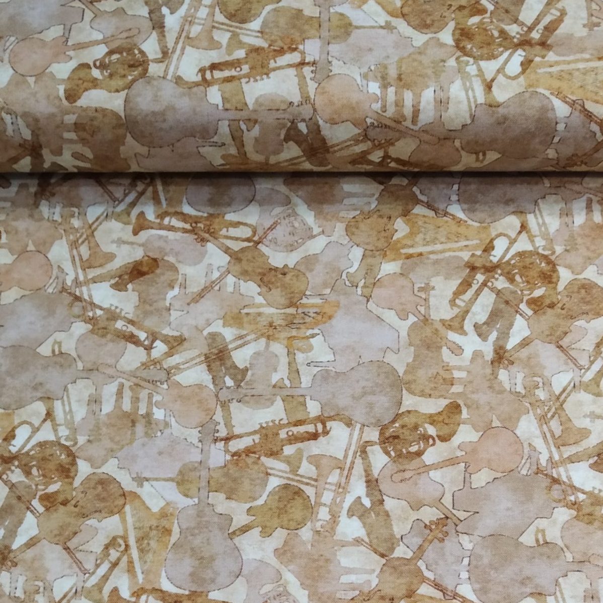 tela de algodón 100% con estampado de instrumentos musicales