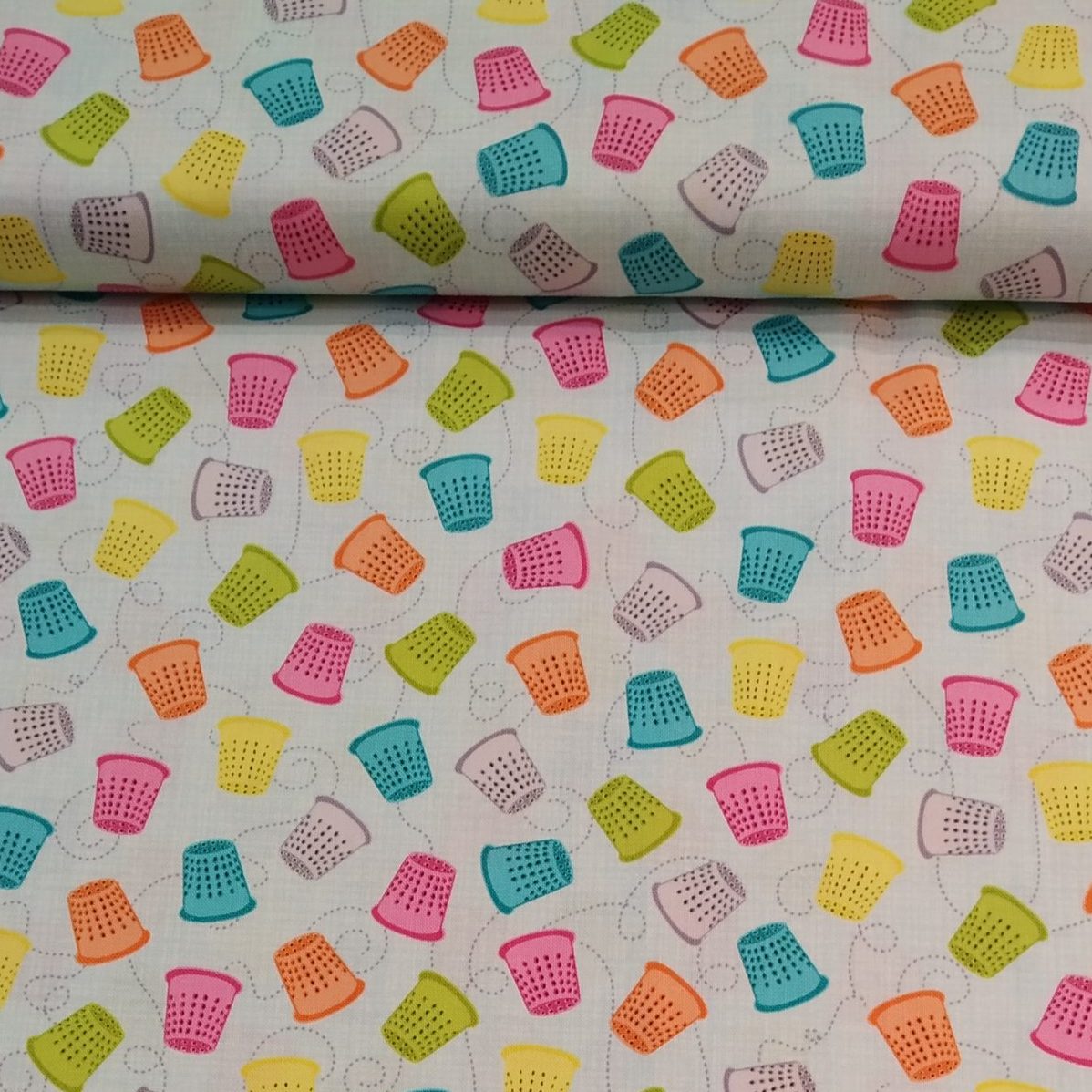 tela motivos costura-dedales de colores