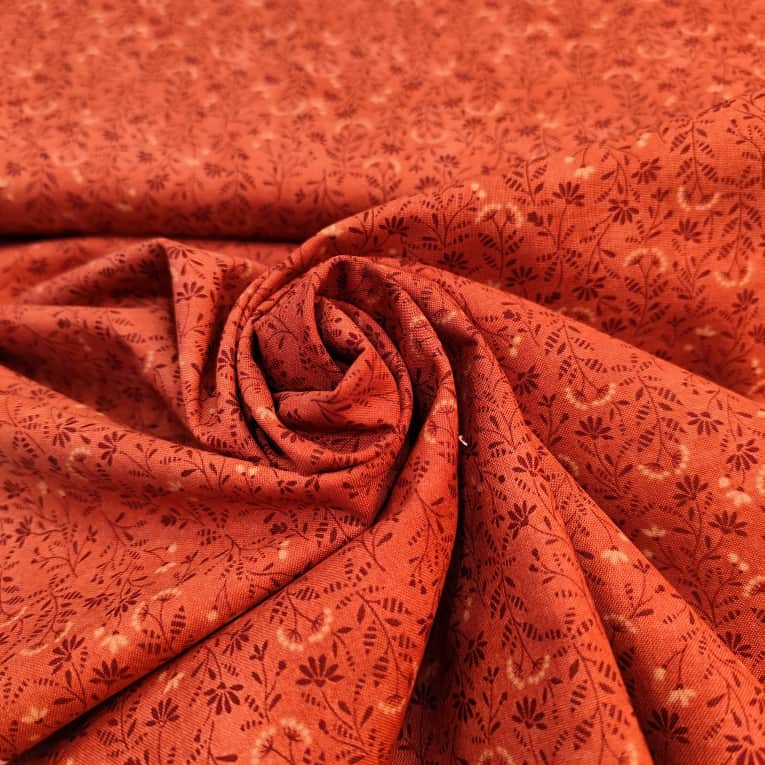 Tela de la colección Flossie’s Flowers en color teja con estampado floral de algodón 100%