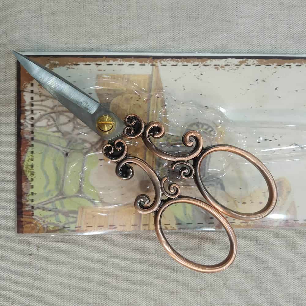 Tijera estilo vintage con color tipo cobre y una medida de 13 cm